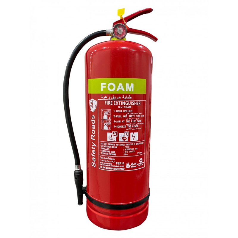 - طفاية حريق فوم 10 لتر و هي أكثر أنواع طفايات الحرائق شيوعًا واستخدامًا لإخماد الحرائق من الفئة B، حيث تستخدم مع حرائق الأخشاب والورق والسوائل القابلة للاشتعال